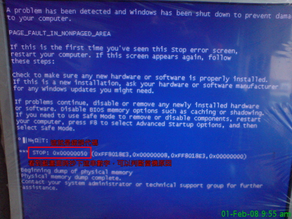 電腦當機時常常看到上面的畫面,但是卻常常搞不清楚到底為什麼當機,這裡就教你如何判斷。