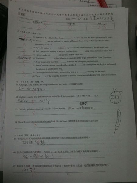 一口氣爆了國英數地科公民五個成績,話說我國英數三科沒一科超過30耶!幹!好爽喔~